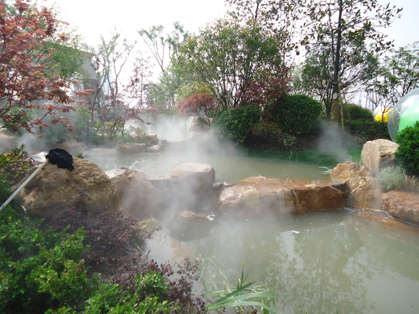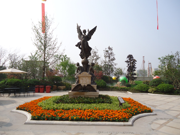 更引人注目的,還有銷(xiāo)售展示中心前面的雕塑?chē)娙?,該噴泉運(yùn)用花崗巖整石雕刻拼接而成,工藝極其復(fù)雜,自上而下不斷灑落的水花,營(yíng)造出一片清涼;無(wú)以復(fù)加的鏤空鐵藝圓頂繁復(fù)花紋和拱門(mén)的石材立面裝飾的皇家景觀亭,精致中透露出大氣;潺潺溪流、霧氣繚繞的人工溪澗,如夢(mèng)似幻;大面積的高爾夫果嶺草坪蜿蜒起伏,華貴雍容……