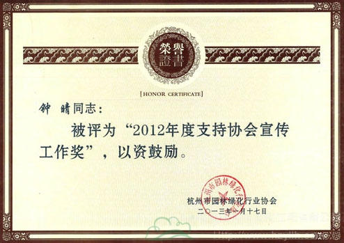 鐘晴、梁夕雯兩位同志榮獲杭州市園林綠化行業(yè)協(xié)會2012年度宣傳工作先進(jìn)個人稱號