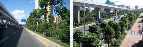 如今,開車行進在這條道路上,干凈整潔的路面、開闊通透的視野、清新自然的景觀,給人帶來閑適、愜意的感覺。“以人為本,尊重自然”的綠化理念,體現(xiàn)在景觀中的每個細節(jié);自然環(huán)境與城市環(huán)境的密切結(jié)合,使高架橋的道路通行功能與橋下中央綠化帶的生態(tài)功能有機融合。整條道路,不僅體顯出深圳這個濱海大都市獨有的景觀特色,更彰顯出這個城市的生機活力與熱情奔放。