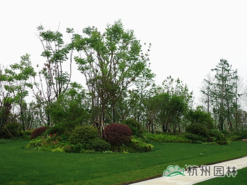 該酒店的景觀工程(一標(biāo)段)由杭州市園林綠化股份有限公司承建,工程施工面積10萬余平方,施工內(nèi)容包括綠化種植、硬質(zhì)鋪裝、園路施工、景觀小品工程、樁基工程、給排水系統(tǒng)工程及景觀照明系統(tǒng)等。作為一個(gè)綜合性園林工程,該工程施工內(nèi)容多,工程量大,工藝相對復(fù)雜,對施工技術(shù)的要求較高。