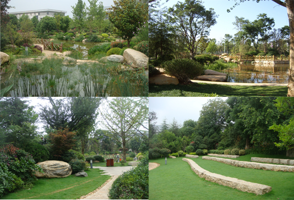 昆明市市級黨政機(jī)關(guān)辦公用房搬遷建設(shè)項目區(qū)內(nèi)景觀綠化工程(第三標(biāo)段),地處昆明市呈貢縣吳家營鄉(xiāng)小尖山西北附近,總面積101800㎡,工程包括硬質(zhì)景觀、綠化種植和水電工程,為大型綜合性園林景觀工程。綠軸D組團(tuán)內(nèi)的人工湖的施工,清香木、黃連木和山楂等特型樹的應(yīng)用,自然石汀步、老石板園路等生態(tài)型游步道的鋪裝,成為工程中最大的特色和亮點。漫步在林蔭小道上,呼吸著清新的空氣,聆聽著涓涓的流水聲,一幅綠意盎然、閑適愜意的生動畫卷帶給人們更多關(guān)于自然的完美體驗!