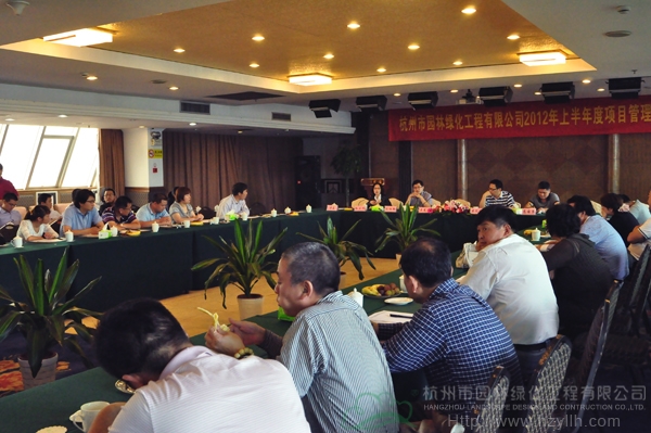 5月26日,杭州市園林綠化工程有限公司在田園賓館八樓會(huì)議廳召開了“2012年上半年度項(xiàng)目管理交流會(huì)”,市場(chǎng)部經(jīng)理傅磊主持會(huì)議。各分公司、項(xiàng)目部及相關(guān)部門共六十多人參加了會(huì)議,董事長(zhǎng)吳光洪、副總經(jīng)理陳伯翔、總經(jīng)理助理吳憶明等領(lǐng)導(dǎo)出席。